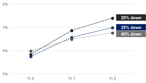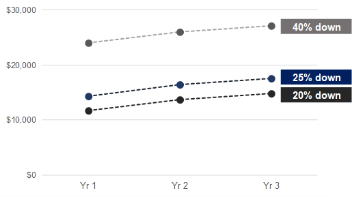 A higher down payment means you've got a smaller mortgage. A smaller mortgage means you're paying fewer dollars in interest and principal. Fewer dollars in interest in principal means more cash in your pocket.