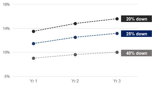 Model the three year cash-on-cash, cashflow, and return on equity for yourself. You'll make the best decision for your circumstances.